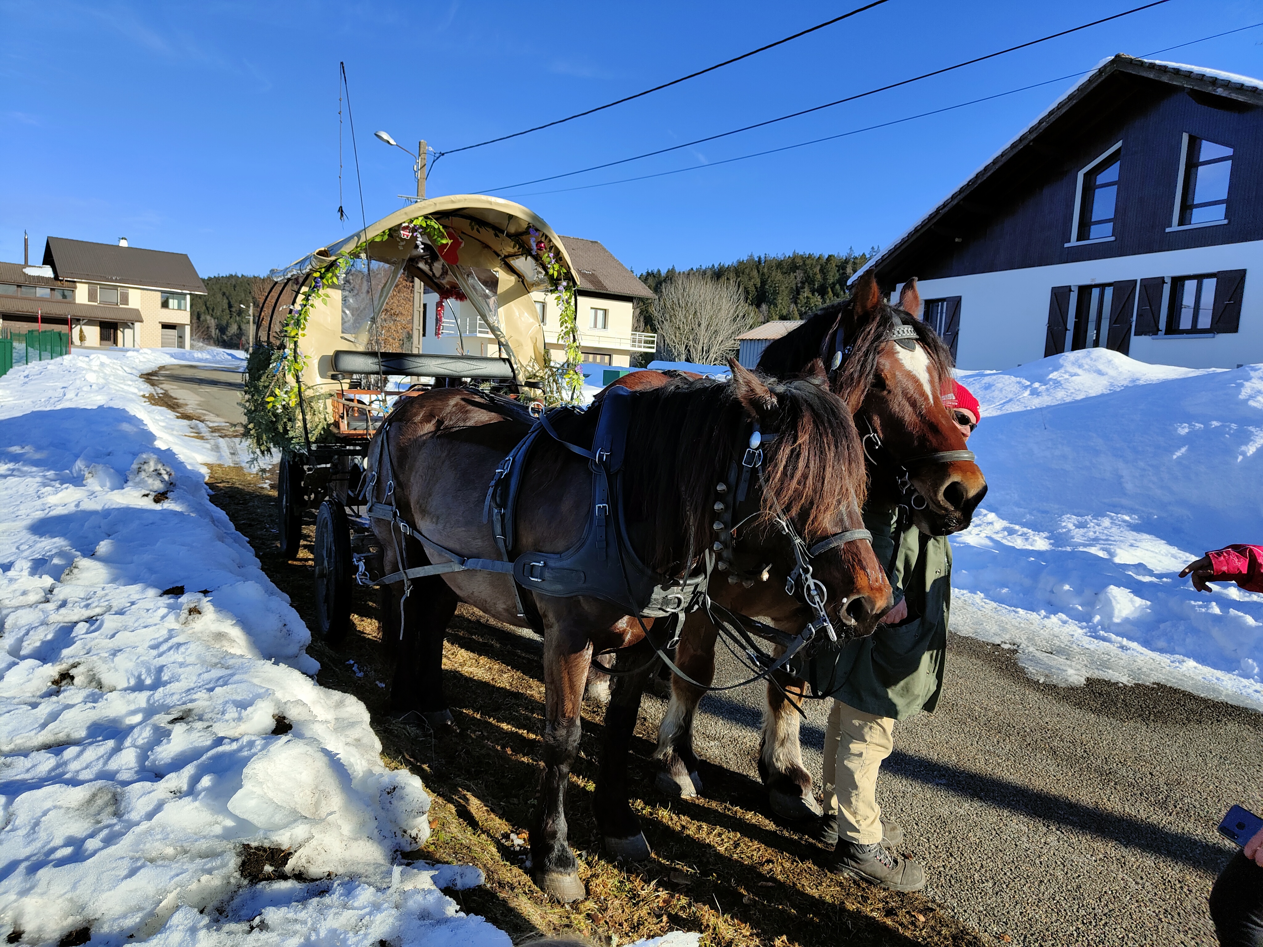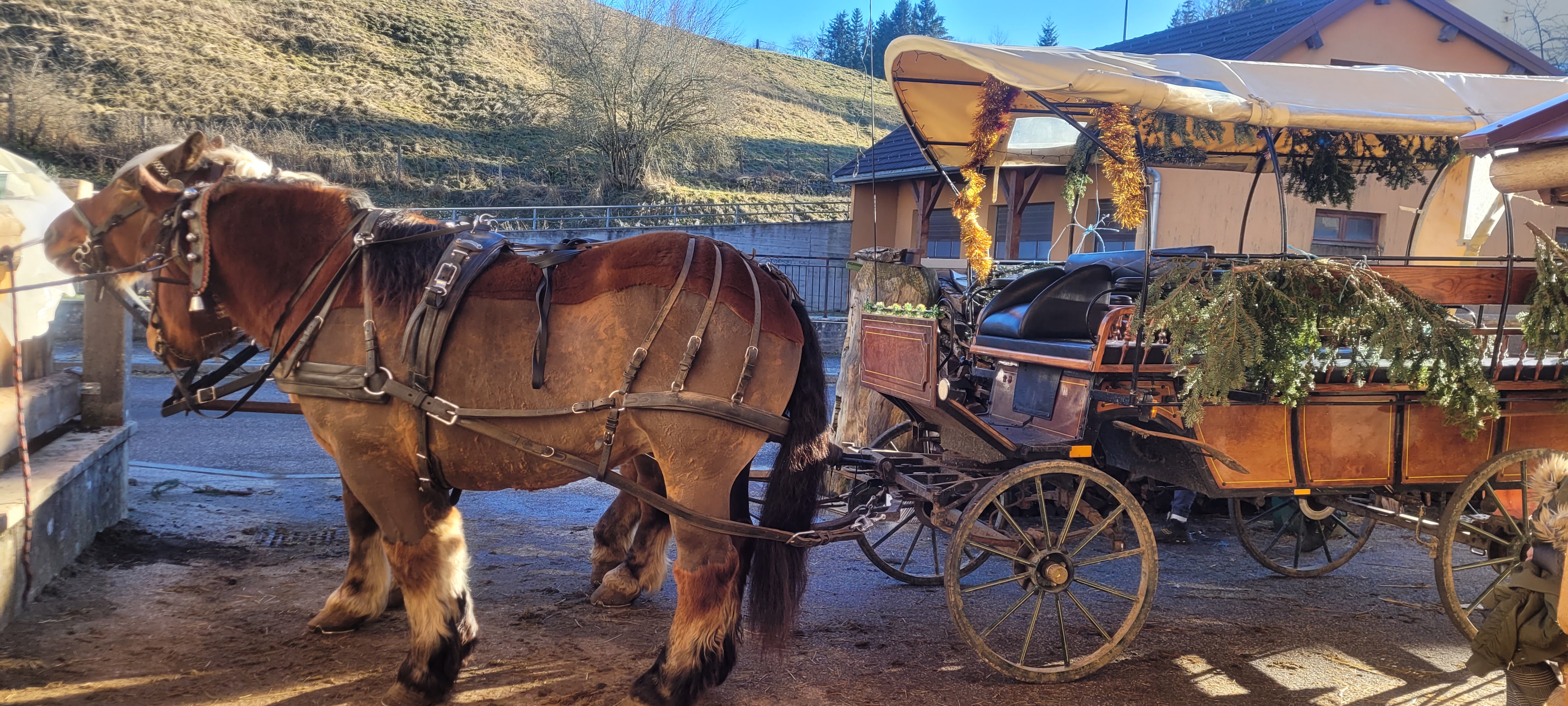 Super balade en caleche avec un cocher Nicolas très attentionné et on ressent la passion familiale pour les chevaux et le jura....plein d anecdotes ou histoires partagés. Très attentionné avec les enfants. Je conseille vivement.