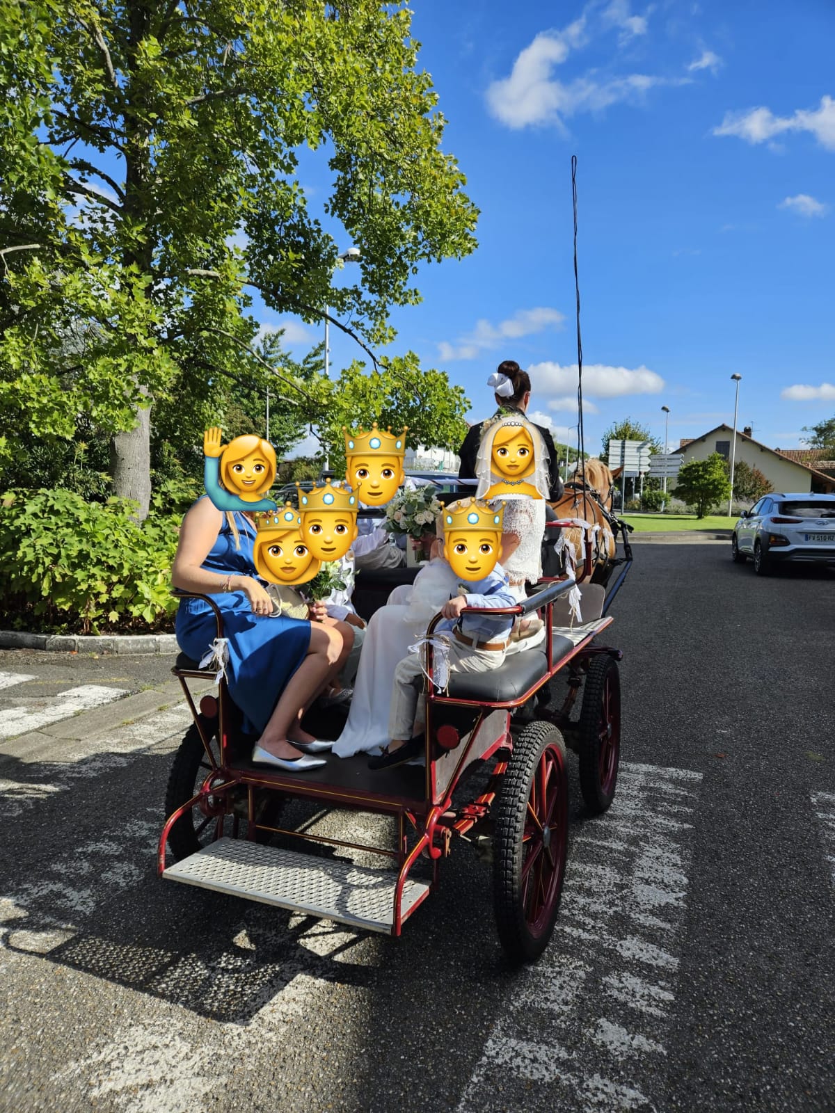 Nous avons célébré notre mariage avec une arrivé en calèche de mon domicile à la Mairie tout était parfait Théa est très professionnel et d'une gentillesse elle ma très bien accompagné et nous avons partagé un agréable moment .Tout le monde à été conquis des plus petits au plus grand c'était magique. Une calèche magnifique avec un super beau cheval . Un grand merci pour tout à vous et votre équipier. Votre mariée du 23septembre .